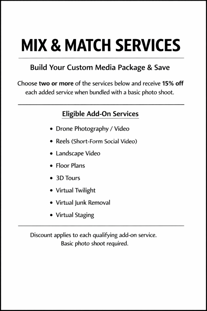 We offer transparent, flexible pricing with clearly defined options, ensuring every client receives tailored real estate media solutions without hidden costs.