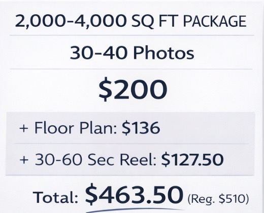 Matterport tours [up to 2000 $175] [2000-3500 $225] [3500-5000 $300] [5000+ $400+]